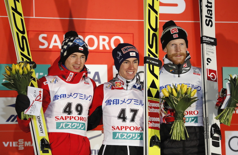 Kamil Stoch zajął drugie miejsce w zawodach Pucharu Świata w skokach narciarskich w japońskim Sapporo. W finałowej serii Polak wynikiem 148,5 m ustanowił rekord obiektu Okurayama. Zwyciężył Austriak Stefan Kraft.
