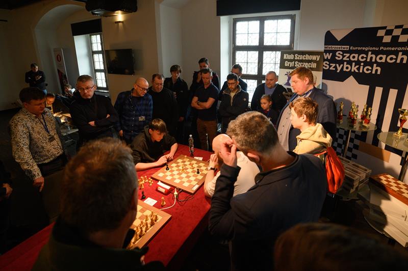 W otwartych mistrzostwach Euroregionu Pomerania w szachach szybkich, które odbyły się w sali tronowej Opery na Zamku w Szczecinie - która była współorganizatorem imprezy obok Klubu Szachowego Gryf Szczecin - startowało 111 zawodników z Polski, Niemiec i Włoch.