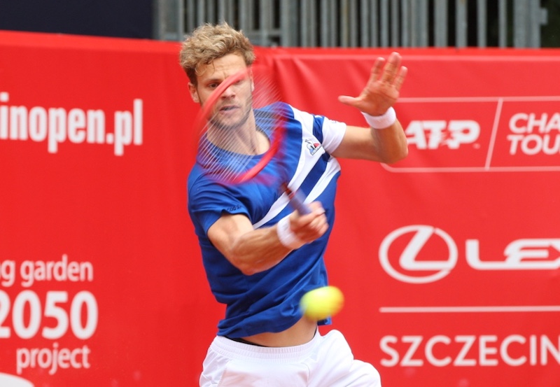Deszczowa aura nie przeszkodziła za to w zakończeniu dwóch innych spotkań. W obu doszło do nieoczekiwanych rozstrzygnięć. Najpierw w trwającym ponad dwie i pół godziny pojedynku 29-letni Niemiec Yannick Hanfmann wyeliminował rozstawionego z nr 4 Włocha Marco Cecchinato 6:3, 4:6, 7:6. Później mecz życia rozegrał Paweł Ciaś. Polak przegrywał w I secie z Stefano Travaglią 0:4, potem bronił setbole, aby odwrócić inauguracyjną partię na swoją korzyść w tie-breaku. Włoch przeważał w drugim secie, ale trzeci znów padł łupem Polaka, który ostatecznie wygrał 7:6, 3:6, 6:2. Ciaś zagra tym samym w piątkowym ćwierćfinale.
