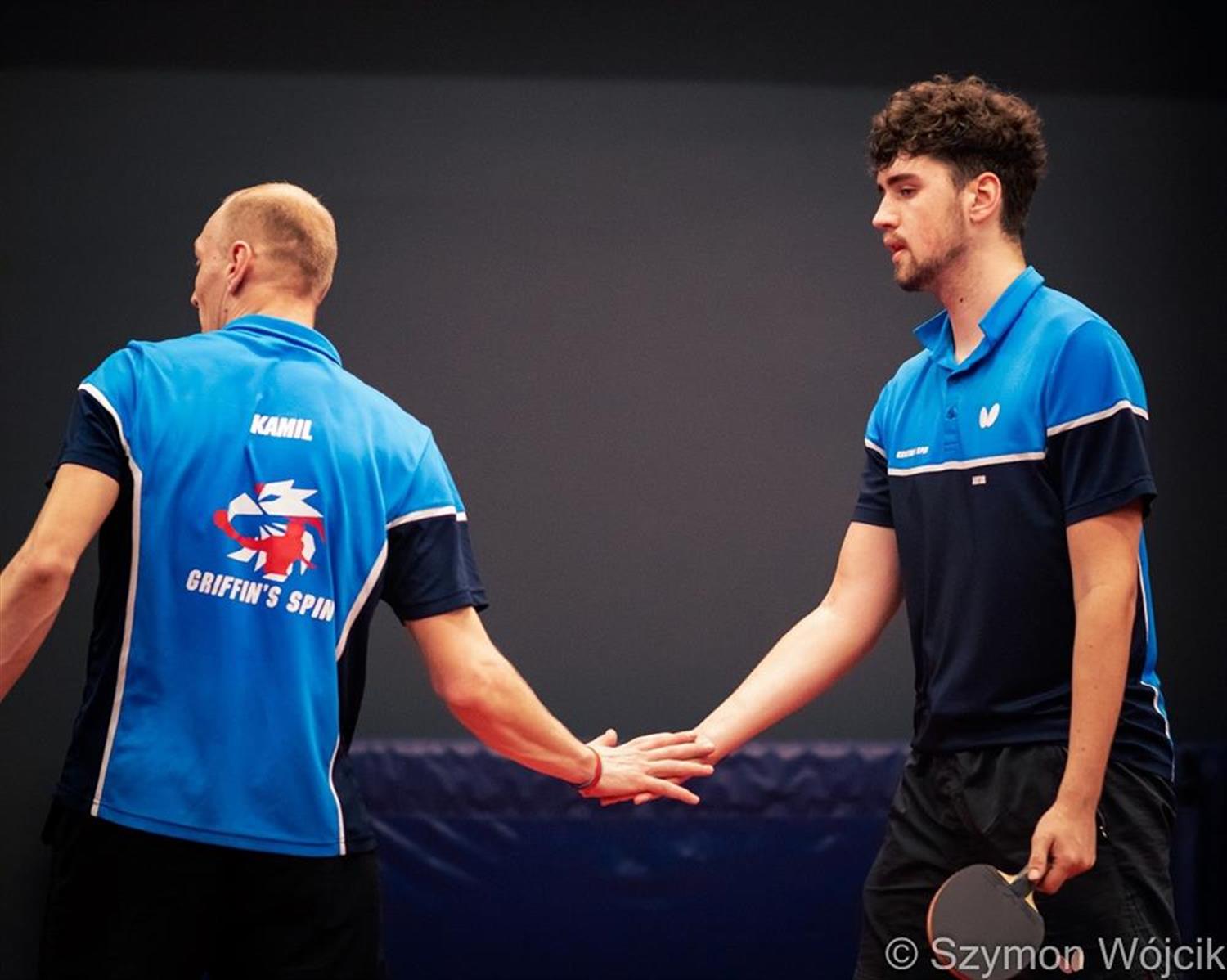 Natomiast Zespół Griffin's Spin Szczecin rozegrał dwa spotkania I ligi gr. północnej. W sobotę szczecinianie przegrali na wyjeździe z Dekorglassem Działdowo II 1:9. Wynik spotkania był jednostronny, choć trzy partie rozstrzygnęły się w piątym secie. Zdobywcą jedynego punktu był Dawid Kosiński, który pokonał Patryka Lewandowskiego 3:1. W drugim spotkaniu Griffin's Spin przegrał u siebie z ZKS Palmiarnią Zielona Góra II 2:8. Spotkanie rozegrane zostało awansem z 9. kolejki, która odbędzie się 9 grudnia. Punkty dla gospodarzy ponownie zdobył Kosiński, który pokonał Łukasz Wachowiaka 3:2, choć przy stanie 0:2 jego przeciwnik miał piłkę meczową. Drugie zwycięstwo to kontrolowana wygrana nad Igorem Misztalem 3:1. Zespół z Zielonej Góry wystawił w tym meczu dwóch czternastolatków - Patryka Żyworonka, reprezentanta kadry narodowej, który od 3 lat trenuje w szkółce Lucjana Błaszczyka i przez ten czas zrobił potężny postęp w grze, a w swojej kategorii wiekowej znajduję się w czołówce rankingu europejskiego i światowego. Drugi zawodnik to Samuel Michna, który również jest reprezentantem kadry narodowej. Natomiast Igor Misztal to reprezentant kadry narodowej niepełnosprawnych.