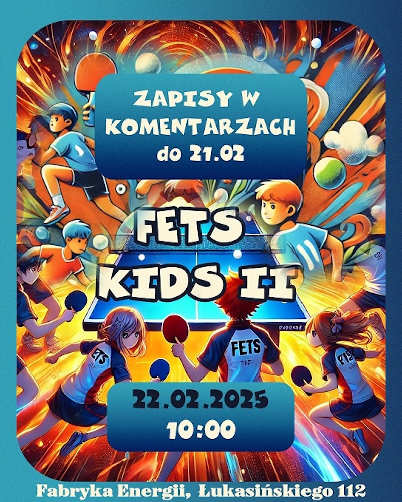 Już w najbliższą sobotę odbędzie się w Fabryce Energii drugi turniej pn. "FETS Kids 2", który skierowany jest do dzieci oraz młodzieży i ma na celu propagowanie tenisa stołowego jako wspaniałego sposobu na aktywność sportową oraz podnoszenie poziomu gry w rywalizacji pomiędzy adeptami klubów w naszym województwie. Do turnieju zgłaszać się mogą osoby do 15 roku życia. Zapisy czynne są do piątku 21 lutego do godz. 18:18. Udział w turnieju jest bezpłatny. Klub Top-Spin Szczecin bierze na siebie wszystkie koszty i zaprasza jak największą ilość dzieciaków wraz z trenerami i rodzicami. Początek zawodów w sobotę 22 lutego o godz. 10.