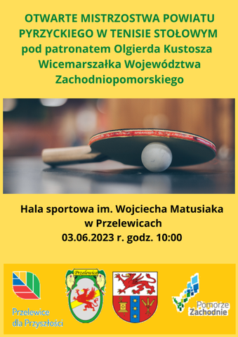 3 czerwca rozegrane zostaną w Przelewicach Otwarte Mistrzostwa Powiatu Pyrzyckiego w tenisie stołowym pod patronatem Olgierda Kustosza Wicemarszałka Województwa Zachodniopomorskiego. W zawodach mogą startować amatorzy oraz zawodniczy zrzeszeni w PZTS, jak również z zagranicy. Start rozgrywek zaplanowano na godz. 10 (kategorie młodzieżowe), zaś od godz. 16, turniej rozegrają osoby dorosłe. Więcej informacji na stronie: przelewice.pl.