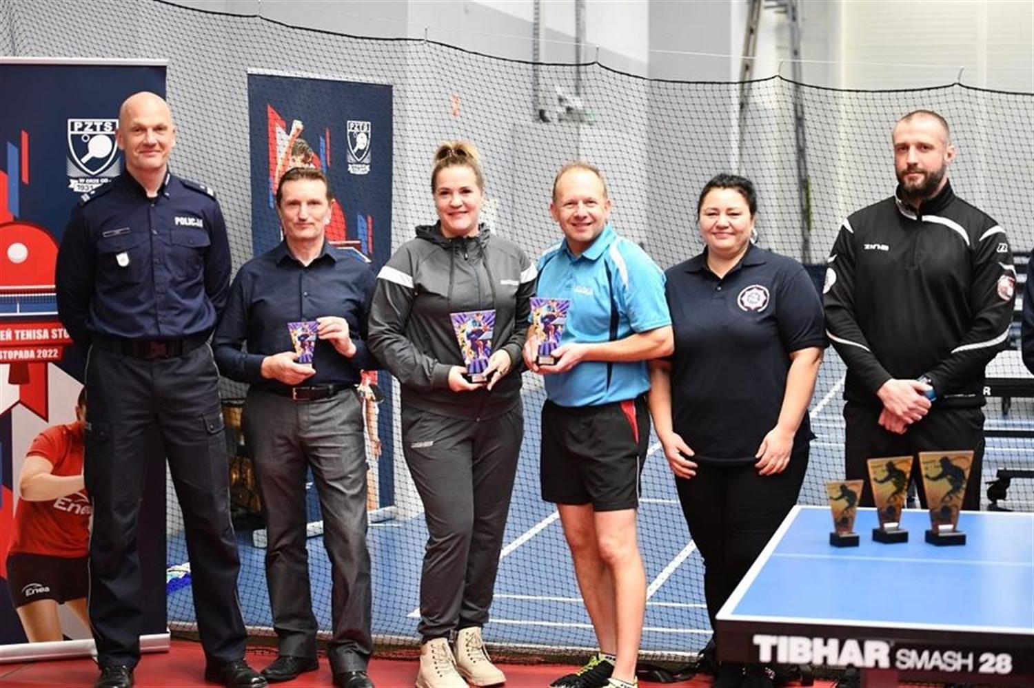Za nami VII Mistrzostwa Policji Województwa Zachodniopomorskiego w Tenisie Stołowym. Zawody rozegrano 8 grudnia w Fabryce Energii przy ul. Łukasińskiego 110. Mistrzostwa zorganizowane zostały przez Zarząd Terenowy NSZZ Policjantów KWP w Szczecinie przy współorganizacji Zarządu Wojewódzkiego NSZZ Policjantów województwa zachodniopomorskiego oraz Wydziału Kadr i Szkolenia KWP w Szczecinie, a patronat nad imprezą objął Komendant Wojewódzki Policji w Szczecinie nadinspektor Tomasz Trawiński. Prowadzenie turnieju od strony sportowej powierzono Prezesowi Stowarzyszenia TOP-SPIN Szczecin Rafałowi Buczkowi, natomiast sędziowanie finałowych pojedynków powierzono sędzinie klasy państwowej Kindze Łosińskiej oraz zawodnikowi tenisa stołowego Wojciechowi Kucowi, którzy z powierzonych zadań wywiązali się wzorowo. W tym roku chęć udziału w zawodach zgłosiło 26 zawodników, jednak z różnych przyczyn do rywalizacji przystąpiło 17 zawodników. W pierwszej kolejności rozegrano turniej indywidualny, a następnie turniej OPEN, w którym również mogli brać udział funkcjonariusze emerytowani oraz pracownicy Policji.