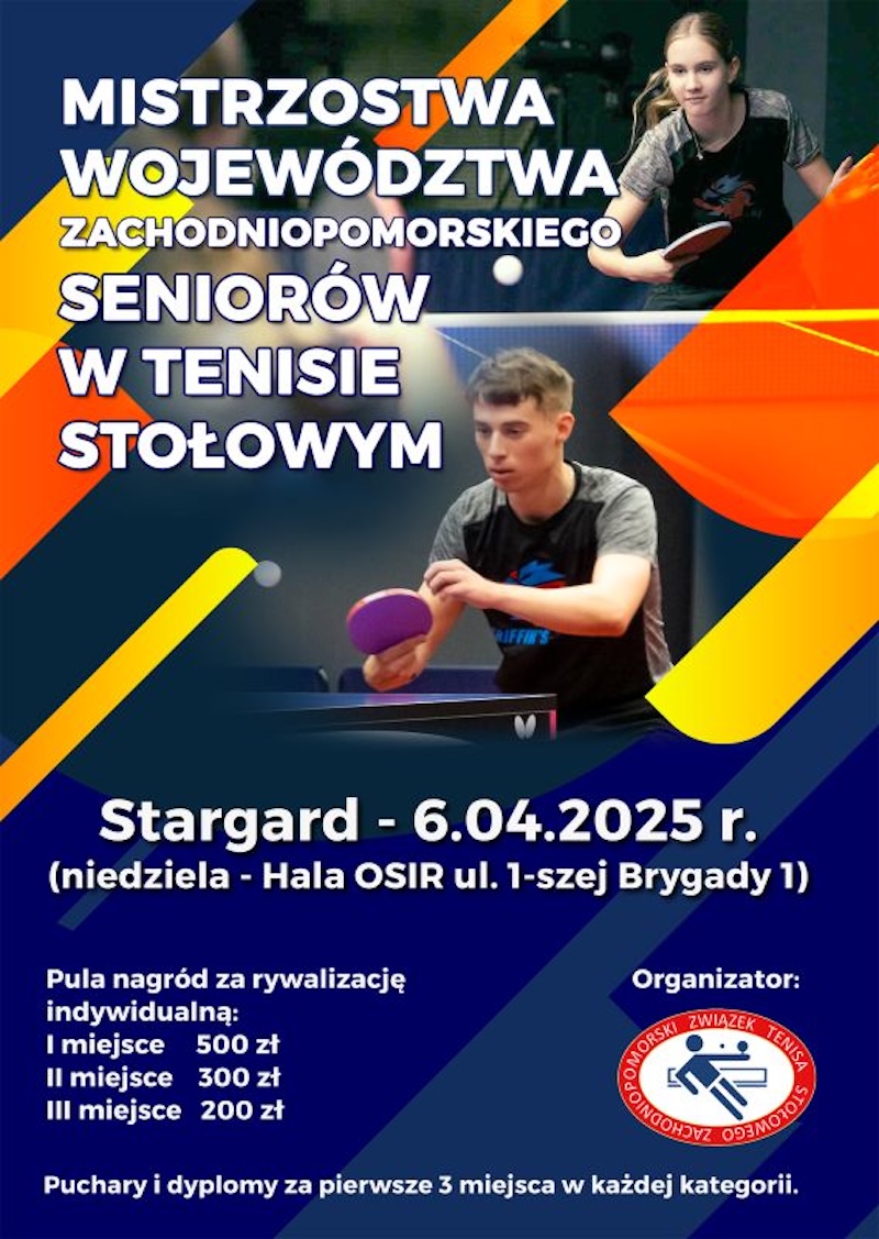 Już w najbliższą niedzielę odbędą się w Stargardzie - Mistrzostwa Województwa Zachodniopomorskiego Seniorek i Seniorów. Turniej odbędzie się w trzech kategoriach: gra pojedyncza, gra podwójna (debel) i gra mieszana (mikst), a wszystkie mecze rozgrywane będą do trzech wygranych setów. Organizatorami turnieju są: Zachodniopomorski Związek Tenisa Stołowego i ATS Stargard.