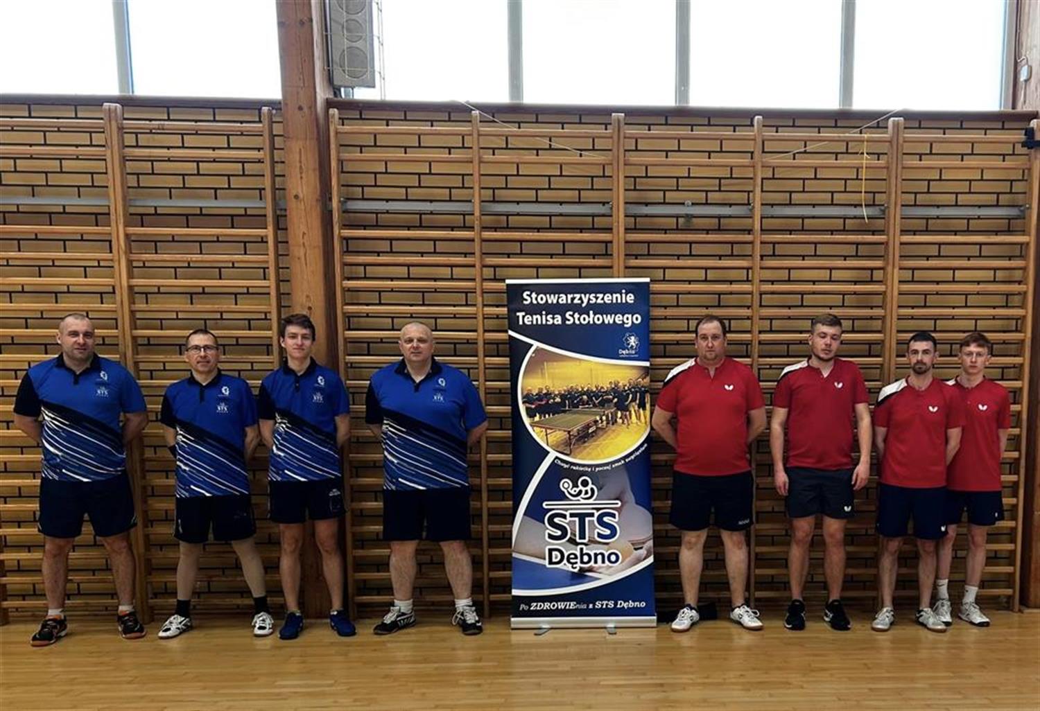 Był to spotkanie czwartej drużyny z trzecią, w którym aż połowa pojedynków rozstrzygnęła się w piątym secie, a mecz trwał ponad 3 godziny. Na pierwszym stole oba spotkania wygrał Marcin Woskowicz, pokonując Jakuba Kwapisia i Kacpra Petasia, zaś Maksymilian Miastowski wygrał tylko z Petasiem. W deblu minimalnie lepszy był zespół z Ostródy (3:2).