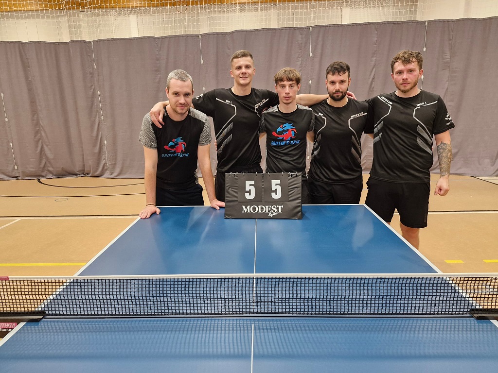 Na pierwszym stole dwa punkty zdobył Nalepa, który pokonał Kamila Kostyka 3:0 i występującego w Superlidze Szymona Malickiego 3:2. Po 1,5 punktu zdobyli Żuk i Jarocki, którzy pokonali Łukasza Nadolskiego 3:0 i 3:1, a w deblu wygrali z duetem Nadolski/Kostyk 3:0. Nieudanie swoją przygodę w Griffin's-Spin rozpoczął Niemiec Kupfer, który przegrał swoje pojedynki z Malickim i Kostykiem (oba po 0:3). Debel Nalepa/Kupfer prowadził już z duetem Malicki/Artur Gromek 2:1, lecz przegrał 2:3. Podobnie Żuk, który wygrywał z Gromkiem 2:1.