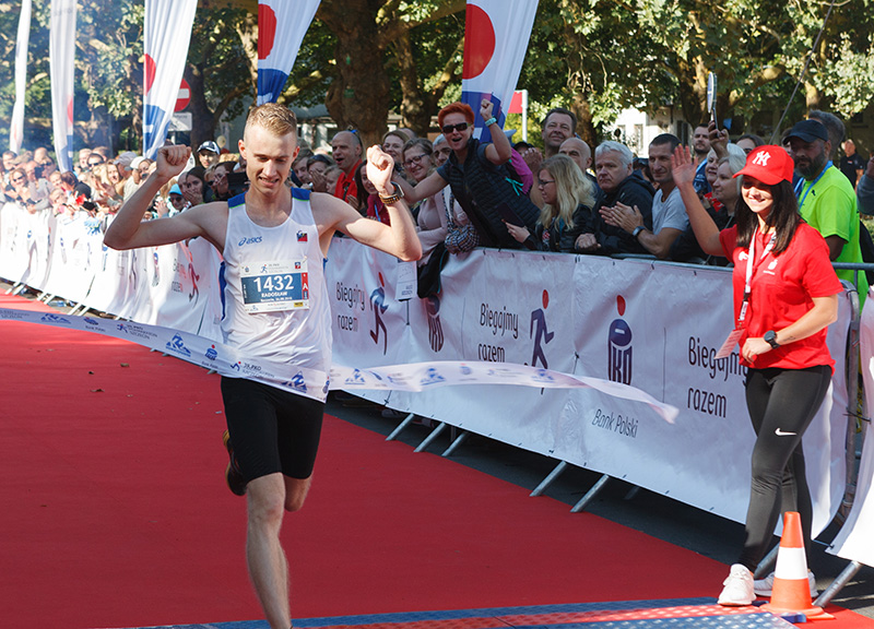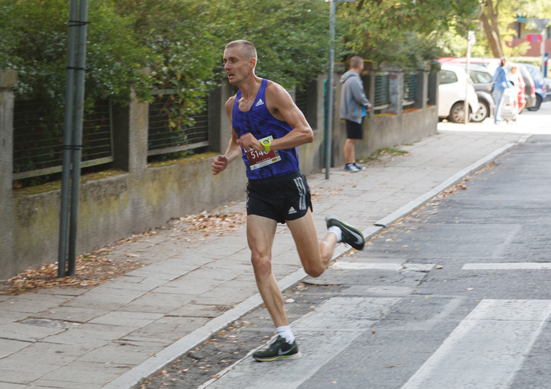 Maratończyk MKL od początku nadawał ton rywalizacji. Już na półmetku uzyskał ponad dwuminutową przewagę nad konkurentami i przez drugą część dystansu niezagrożony samotnie zmierzał do mety. Nad drugim w końcowej klasyfikacji Mateuszem Leśniakiem (Choszczeńska 10) miał ostatecznie dwie minuty przewagi. Trzeci na mecie zameldował się Marek Urbański (1.17,28). Wśród pań pierwsze linię trasy półmaratonu minęła Sylwia Teletańska (Aktywne Choszczno) z czasem 1.26,07.