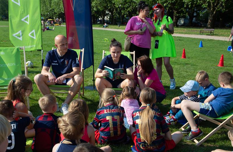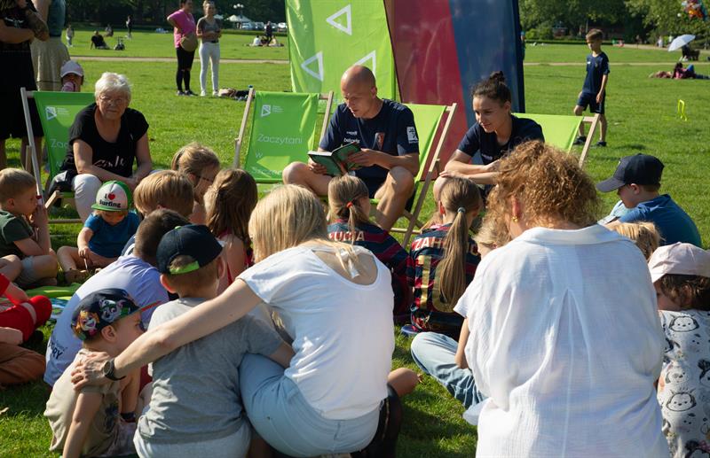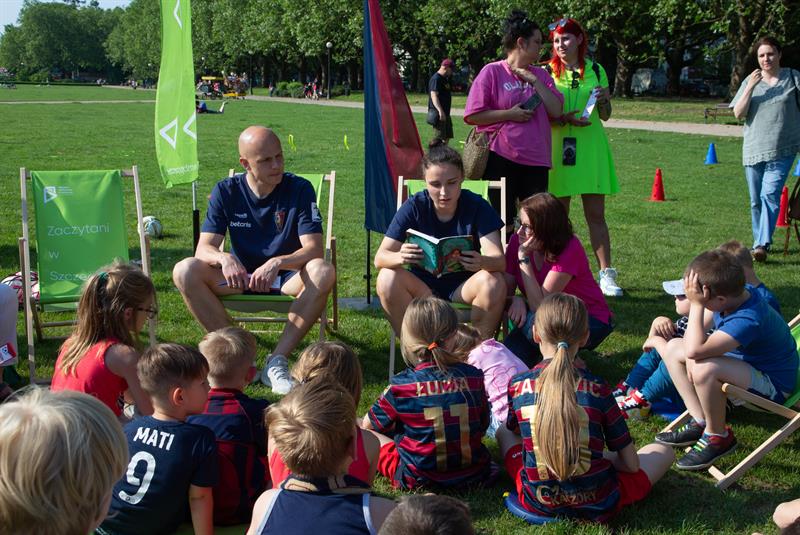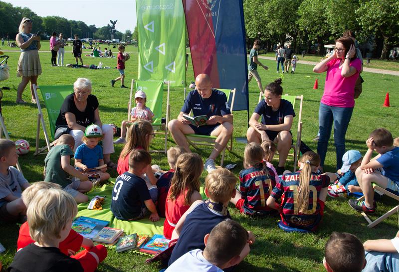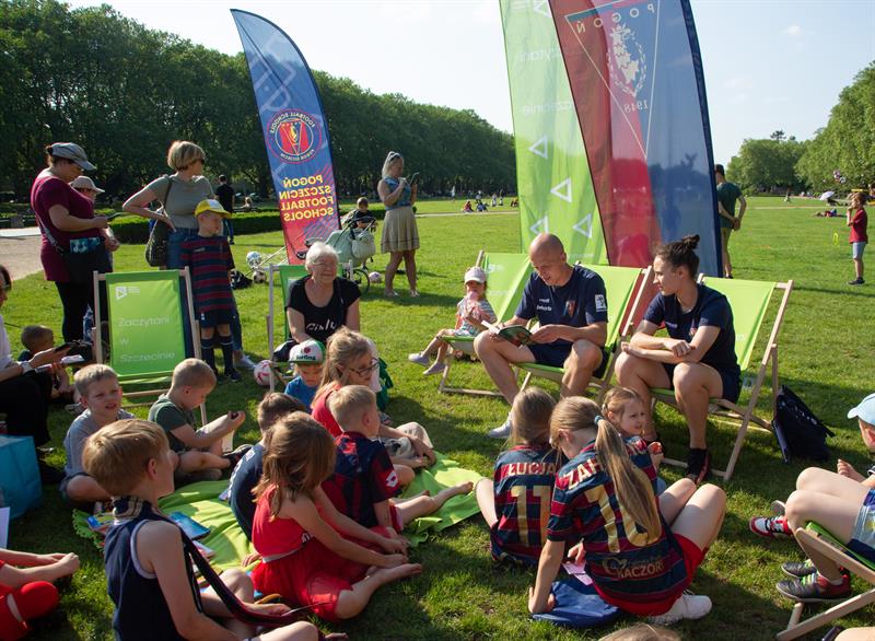 Organizatorzy imprezy udanie połączyli literaturę ze sportem, pokazując młodym fanom Pogoni świat książek i sugerując im, aby nie tylko chodzili na mecze, lecz także czytali, inspirując się swoimi idolami. Wszyscy mali kibice i kibicki sportowe razem z portowcami poczytali i potrenowali sztuczki pod hasłem: „Z piłką i książką na trawie”.