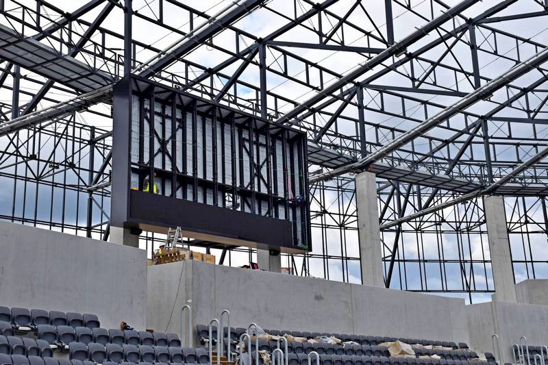 Na modernizowanym stadionie miejskim, na którym swoje mecze rozgrywają piłkarze Pogoni Szczecin, rozpoczął się montaż wielkich ekranów LED. Po ich zamontowaniu poprawi się widoczność komunikatów pokazywanym kibicom.