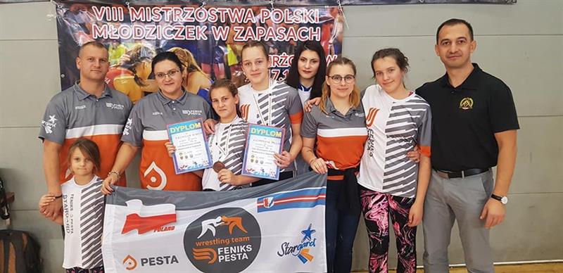 W Dzierżoniowie odbyły się mistrzostwa Polski młodziczek w zapasach, podczas których brązowe medale zdobyły reprezentantki stargardzkiego klubu Feniks Pesta: Nikola Piechcka (46 kg) oraz Paulina Kucharczyk (66 kg). Ich koleżanka klubowa Pola Fojut (62 kg) po trzech wygranych pojedynkach, niestety przegrała walkę o brązowy medal. ©℗ (mij)