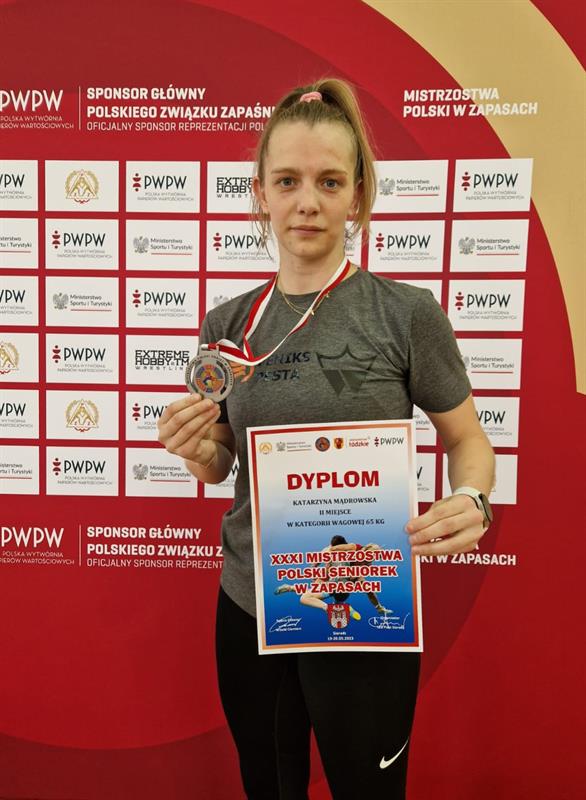 Zapaśniczka i trenerka Feniksa Pesty Stargard Katarzyna Mądrowska zdobyła srebrny medal rozgrywanych w Sieradzu mistrzostw Polski seniorek w zapasach kobiet, w wadze do 65 kg staczając trzy walki, z których dwie wygrała, a w finale uległa rywalce z Cementu Gryf Chełm.