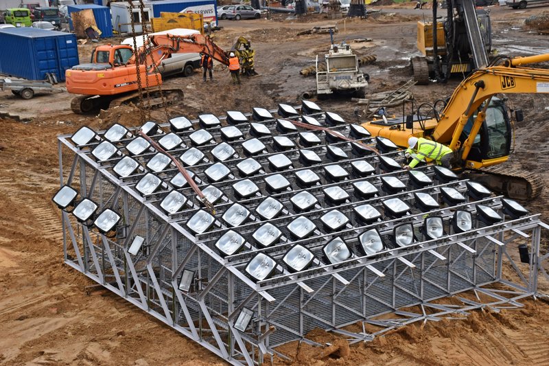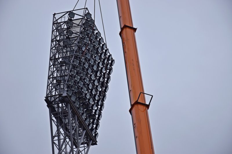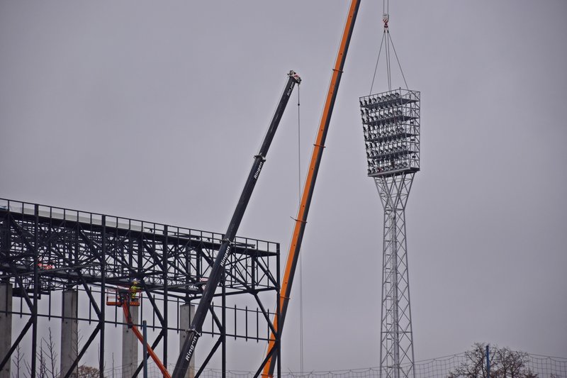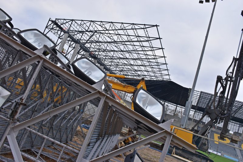 Jak poinformowało miasto, rozpoczęcie rozbiórek starego obiektu i przystąpienie do prac związanych z budową nowej trybuny, oznacza konieczność rozebrania wysokich masztów oświetleniowych, które przez wiele lat wpisane były w krajobraz kompleksu sportowego przy ul. Twardowskiego. W poniedziałek rozpoczął się demontaż stalowych konstrukcji. To ostatnie dwa z czterech starych jupiterów, które oświetlały murawę Stadionu Miejskiego w Szczecinie.