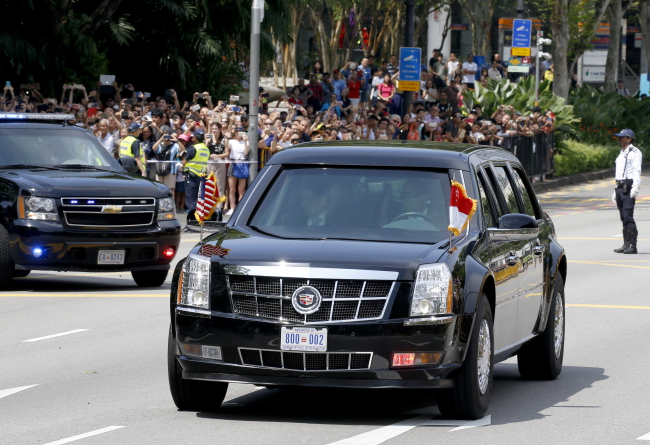 Po wyjściu z samolotu Trump nie wygłosił żadnej mowy, lecz wsiadł do swojej pancernej limuzyny, nazywanej „bestią”, i udał się w kierunku centrum miasta.