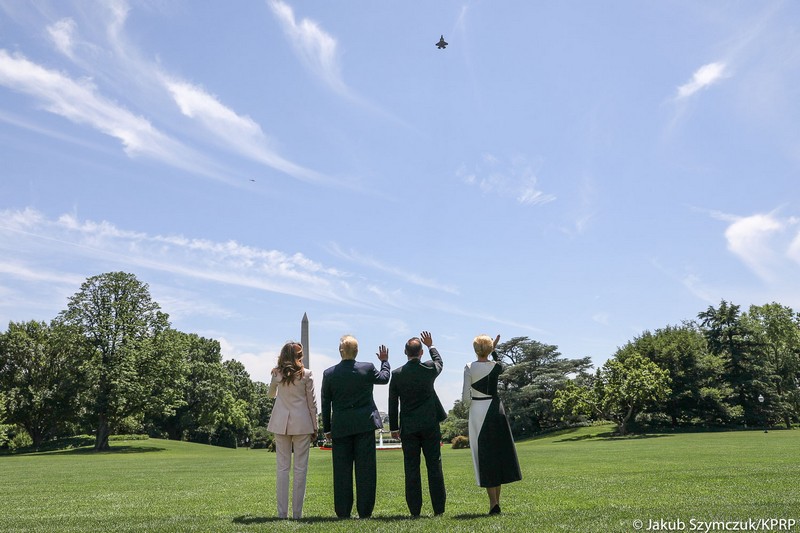 Po ceremonii podpisania deklaracji prezydenci wraz z małżonkami na zewnątrz Białego Domu obejrzeli pokaz myśliwców F-35, które Polska chce kupić od Stanów Zjednoczonych. - Polska zadeklarowała gotowość zakupu 32 samolotów F-35 - takich, jakie widzieliśmy właśnie przelatujące nad Białym Domem. Widzieliśmy znakomity przelot tego niezwykle nowoczesnego samolotu; przeleciał nad Białym Domem i nieomalże zatrzymał się w powietrzu. Pomyślałem: czy coś się stało? Nie za szybko leci. Ale był to po prostu element akrobacji, jest to jeden z niewielu samolotów, które potrafią lądować pionowo. To jeden najwspanialszych myśliwców bojowych na świecie - powiedział Trump.