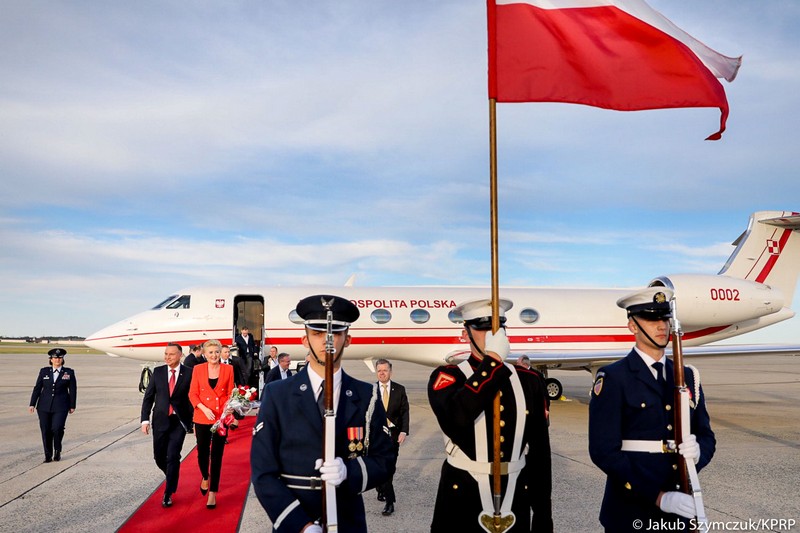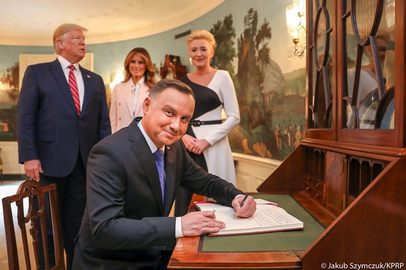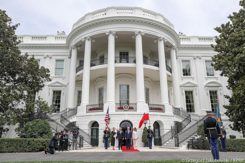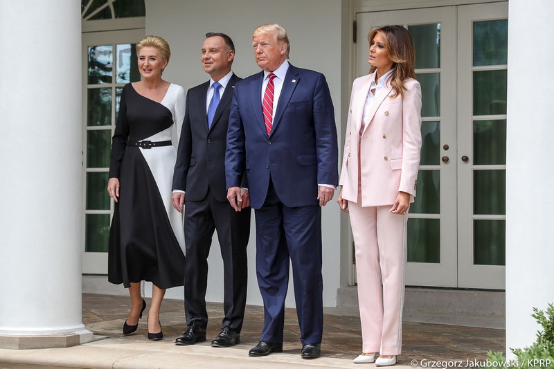 Prezydent Duda podziękował Donaldowi Trumpowi i jego małżonce Melanii za zaproszenie do USA, "za możliwość odbycia kolejnej w ciągu ostatnich 10 miesięcy oficjalnej wizyty w USA w Białym Domu". Według Dudy w sposób jednoznaczny pokazuje to, jak bardzo bliskie i dobre są dzisiaj kontakty pomiędzy Polską i Stanami Zjednoczonymi. - Wszyscy mamy nadzieję, że odwiedzi nas pan prezydent w Polsce we wrześniu i będziemy mogli razem uczcić pamięć wszystkich tych, którzy zginęli w czasie II wojny światowej - powiedział polski prezydent.
