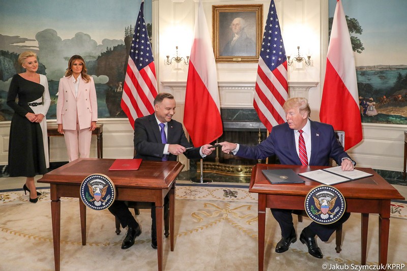 Prezydenci Polski Andrzej Duda i USA Donald Trump podpisali w środę w Waszyngtonie deklarację ws. zwiększenia obecności wojskowej USA w Polsce. Zgodnie z dokumentem ta trwała obecność ma w najbliższej przyszłości wzrosnąć o około tysiąca dodatkowych żołnierzy.
