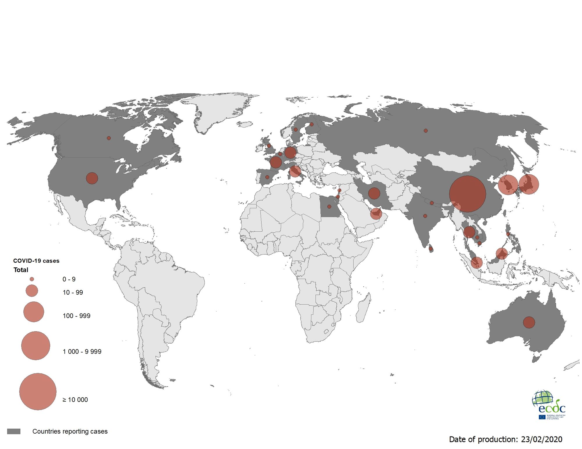 Najgorzej sytuacja wygląda w Chinach, gdzie liczba zakażonych przekroczyła 77 tys., a zmarło już prawie 2,5 tys. osób. Bardzo niepokojące jest też rozszerzanie sie ognisk choroby w innych krajach świata, m.in. Korei Południowej (602 zakażenia i 5 zmarłych), Japonii (132 chorych, jedna osoba nie żyje) oraz Iranie (28 zakażonych i 5 zmarłych). W Europie najgorzej sytuacja wygląda w północnych Włoszech. Ostatnie informacje mówią tu o 219 zakażonych i 5 zmarłych pacjentach. W związku z tym włoski rząd wydał dekret, na podstawie którego zakazano wstępu i opuszczania 10 gmin w Lombardii oraz jednej gminy w Wenecji Euganejskiej. W niektórych miastach odwołano imprezy masowe, zamknięto miejsca spotkań publicznych oraz szkoły.