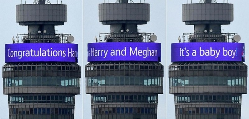 W reakcji na informację o narodzinach "Baby Sussex" na niebiesko podświetlono słynną londyńską BT Tower, na której wyświetlono napis: "To chłopiec!".