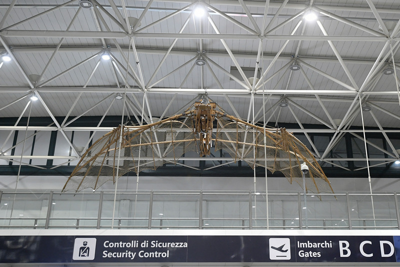 W terminalach 1 i 3 międzynarodowego portu lotniczego, jednego z największych w Europie, pasażerowie mogą zobaczyć wystawę "Skrzydła Leonarda. Geniusz i lot". Ustawione tam zostały machiny wykonane absolutnie wiernie, jak zapewniono, według rysunków artysty z Toskanii, zmarłego 2 maja 1519 roku.