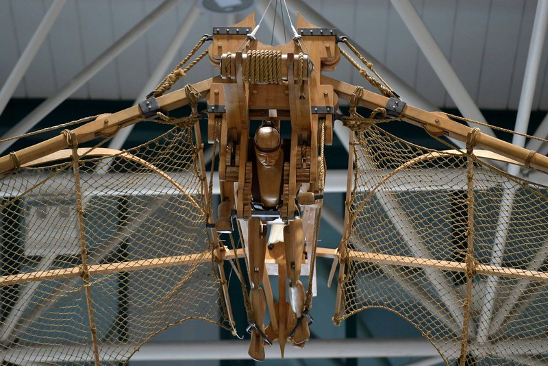 Jest tam między innymi latający statek zbudowany na podstawie sugestywnego rysunku mistrza renesansu czy maszyna, którą uważa się za prototyp szybowca. Najbardziej imponująca prezentacja to sylwetka "latającego człowieka" ze skrzydłami o rozpiętości 11 metrów. Gdy się go ogląda, słychać wokół odgłos trzepotu skrzydeł.