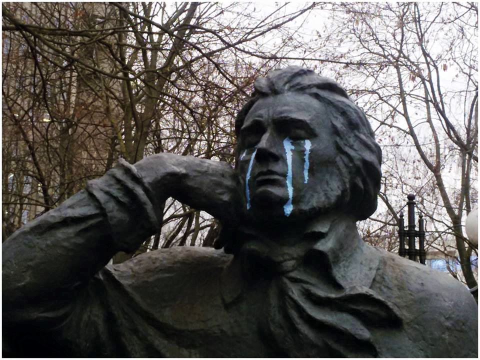 Jako pierwsza o akcie wandalizmu poinformowała mińska internautka. W czwartek (23 listopada) wydział prasowy Mińskiego Miejskiego Komitetu Wykonawczego przekazał, że służby porządkowe niezwłocznie usuną niebieskie plamy z pomnika poety. Nie wiadomo, kto i kiedy domalował na pomniku Mickiewicza błękitne smugi przypominające łzy. PAP potwierdziła na miejscu, że zostały one usunięte.