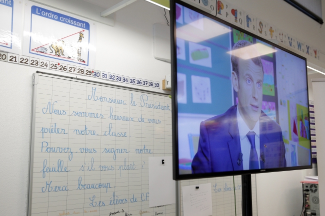 Na zdjęciu: Prezydent Macron podczas telewizyjnego wywiadu