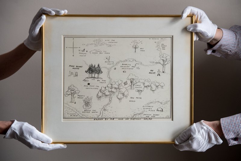 Oryginał mapy Stumilowego Lasu, w którym toczą się przygody Kubusia Puchatka i jego przyjaciół, został we wtorek sprzedany za 571 tys. dolarów na aukcji w londyńskim domu Sotheby's. To rekord za oryginał książkowej ilustracji.