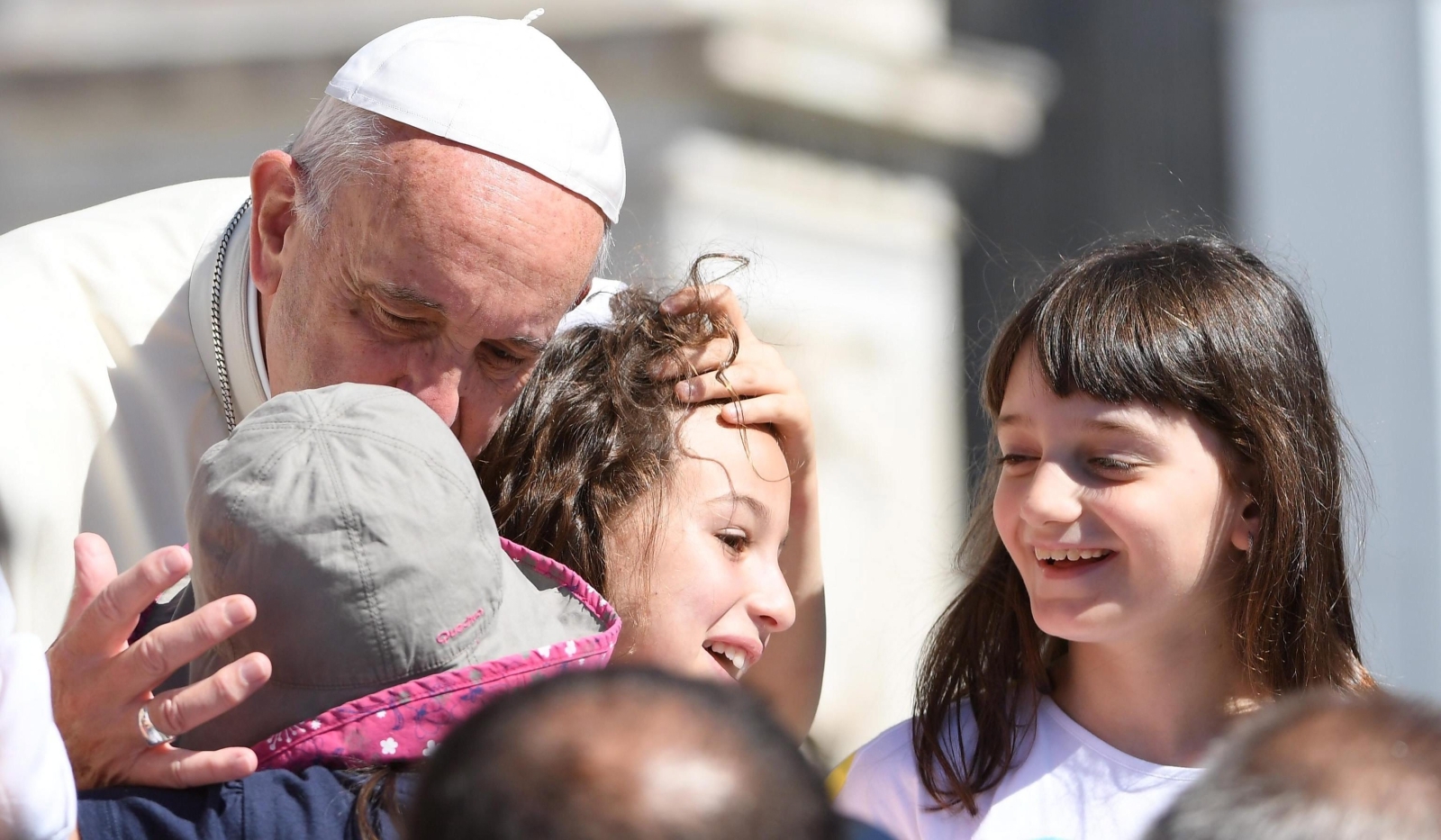 Zgodnie ze swym zwyczajem podczas objazdu w papamobile placu Świętego Piotra przed audiencją Franciszek zaprosił do samochodu czworo dzieci, z którymi jeździł następnie witając się z wiernymi.