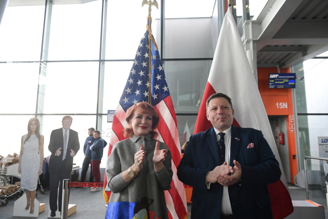 Na zdjęciu: Ambasador USA w Polsce Georgette Mosbacher i prezes zarządu PLL LOT Rafał Milczarski podczas symbolicznego rozpoczęcia programu ruchu bezwizowego na lotnisku Okęcie w Warszawie