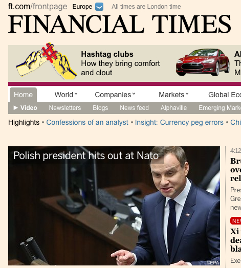 W pierwszym zagranicznym wywiadzie po zaprzysiężeniu prezydent Andrzej Duda powiedział "Financial Times", że Polska nie chce być strefą buforową i wezwał NATO do ustanowienia stałych baz wojskowych na terenie kraju.