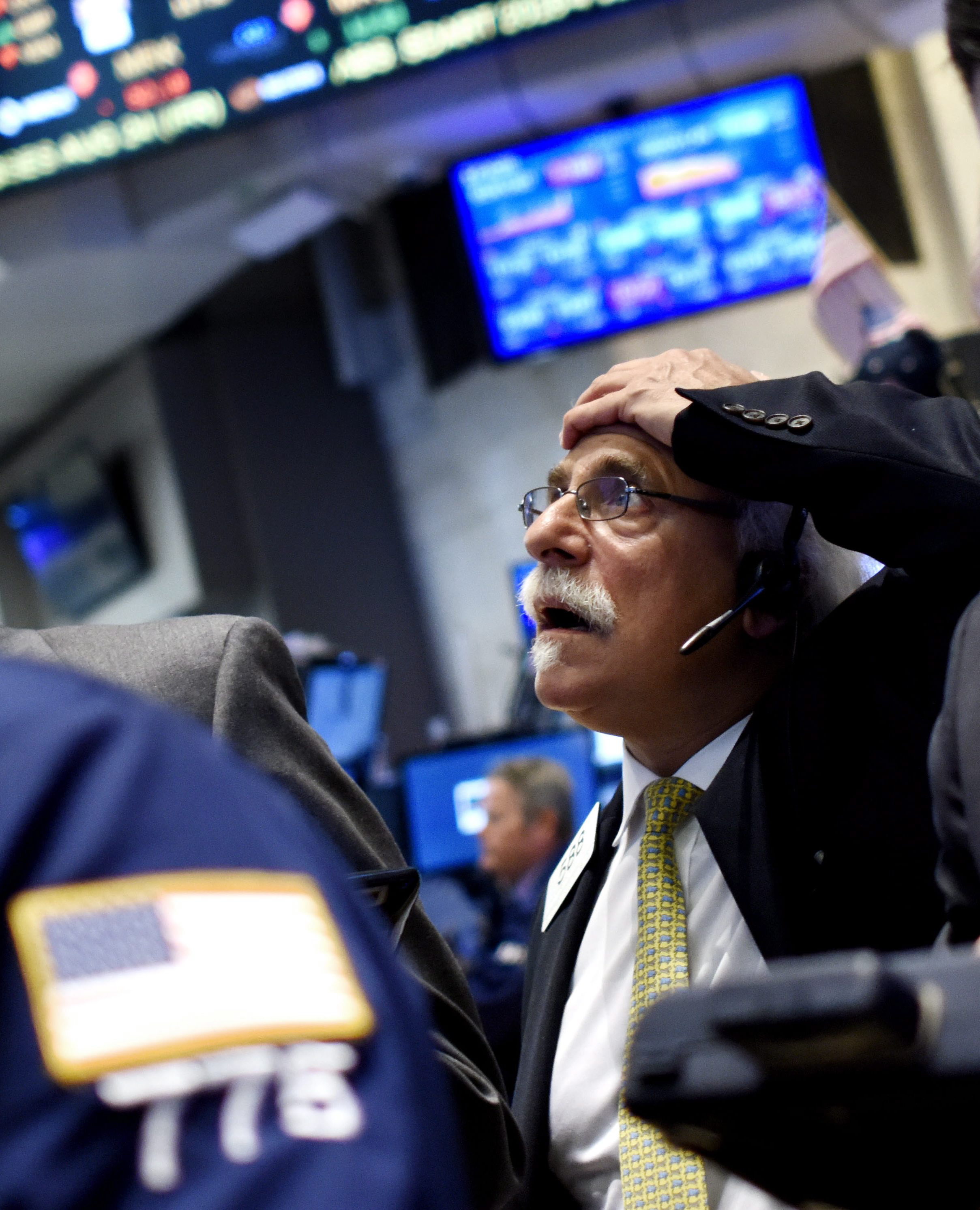 Na zdjęciu: makler z Wall Street z niedowierzaniem patrzy na czerwone indeksy amerykańskiej giełdy zaraz po jej otwarciu.