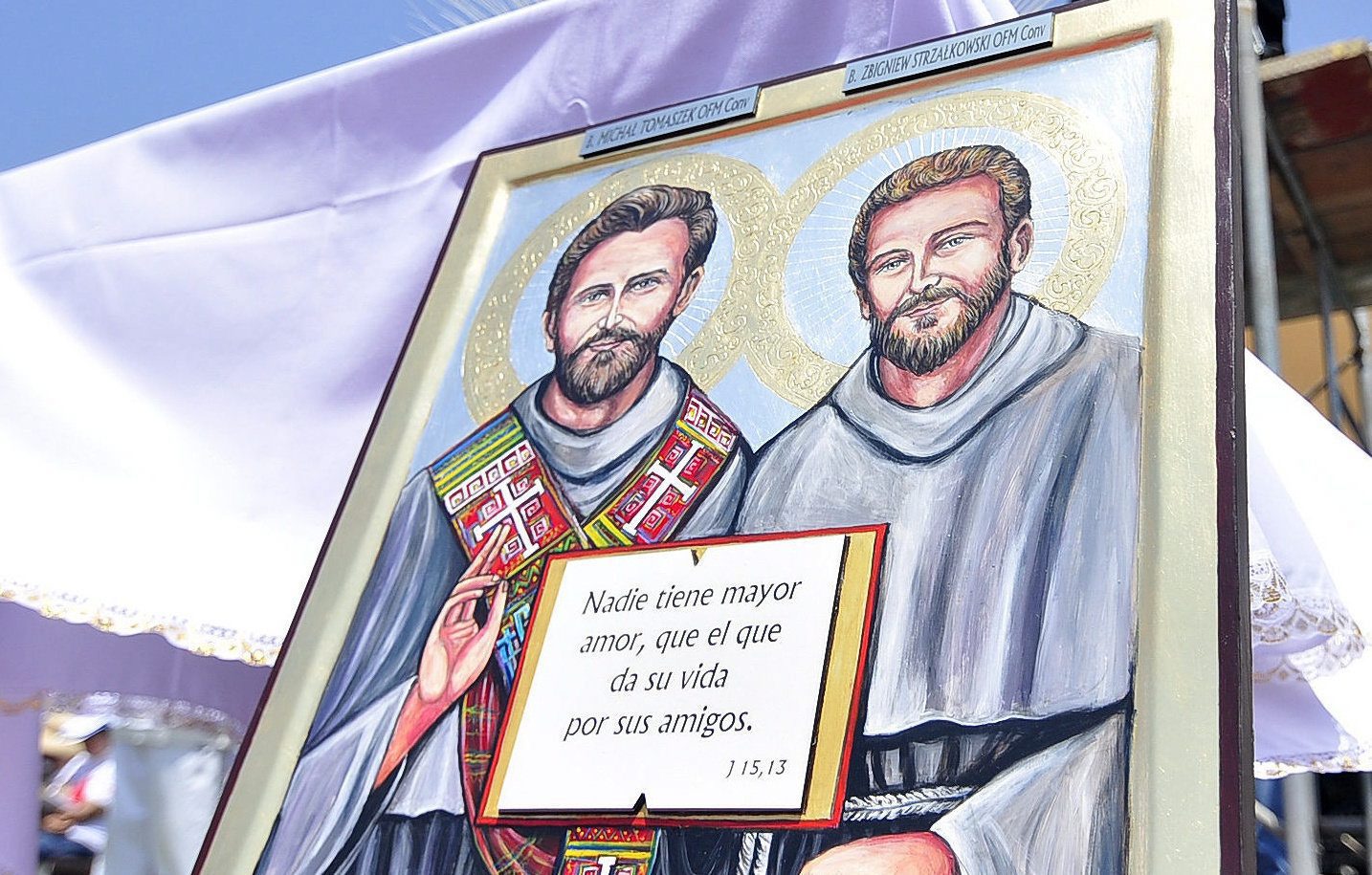 Franciszkanie o. Zbigniew Strzałkowski i o. Michał Tomaszek rozpoczęli pracę misyjną w peruwiańskim Pariacoto w 1989 r. Mimo świadomości zagrożenia ze strony terrorystów swoją opieką i modlitwą otaczali najbardziej potrzebujących: biednych i chorych. Nie chcieli opuścić tego miejsca. Zostali porwani 9 sierpnia 1991 r. Terroryści maoistowskiej organizacji Świetlisty Szlak związali ich i wywieźli samochodem za miasto. Tam, dwoma strzałami w tył głowy zabili trzydziestokilkuletnich zakonników. Proces beatyfikacyjny rozpoczął się na szczeblu diecezjalnym w 1996 r., a od 2002 r. toczyło się postępowanie w Watykanie. Są oni pierwszymi męczennikami w historii Peru i pierwszymi polskimi błogosławionymi misjonarzami męczennikami. (pap)
