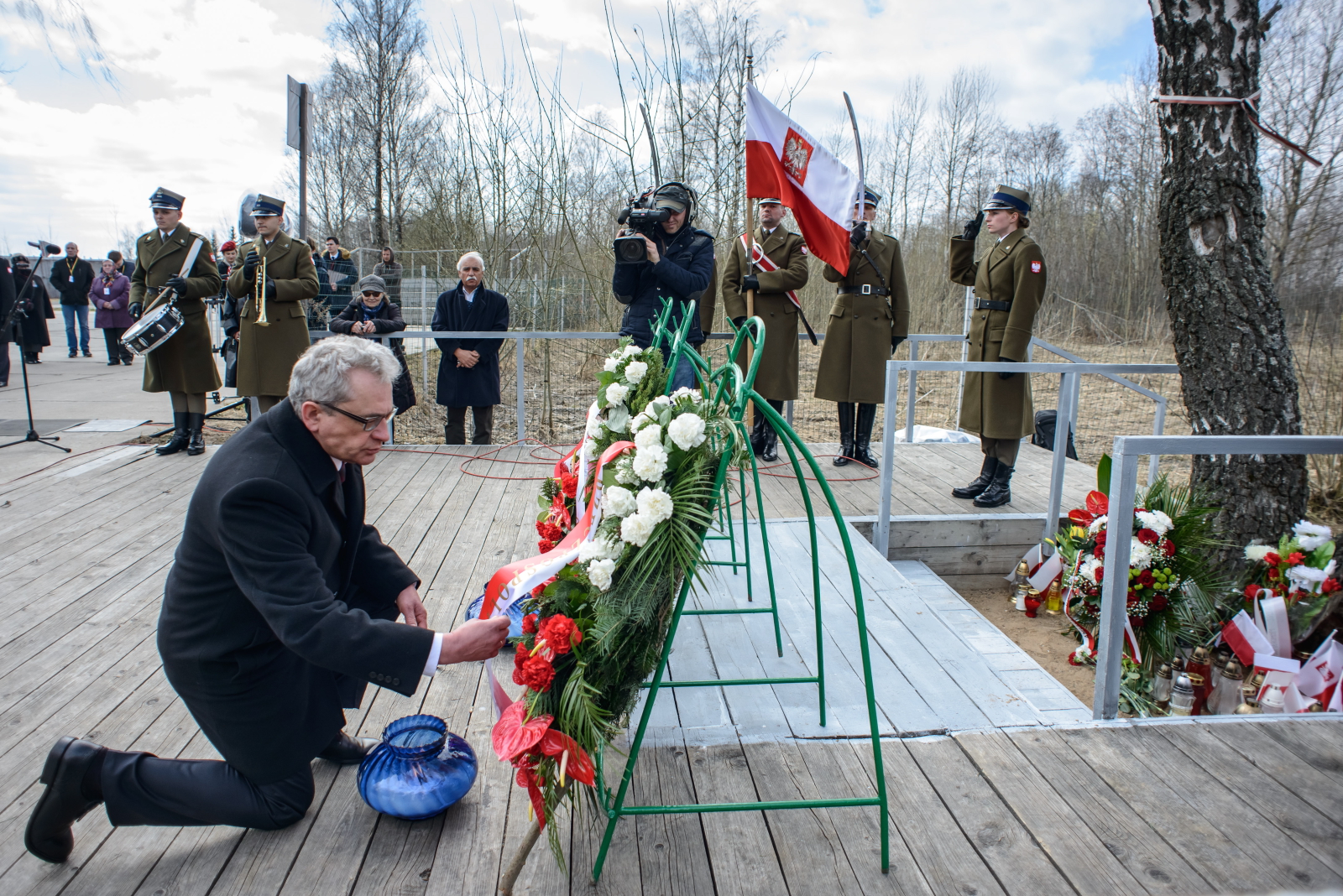 – Niedaleko tego miejsca, w którym się teraz znajdujemy, siedem lat temu, 10 kwietnia 2010 roku, Rzeczpospolita poniosła dotkliwą stratę – straciła swego prezydenta, profesora Lecha Kaczyńskiego, który wraz z małżonką i towarzyszącymi osobami, wśród których był ostatni prezydentem RP na uchodźstwie Ryszard Kaczorowski, zmierzał do Katynia, aby w imieniu całego Narodu oddać należną cześć naszym Rodakom, zamordowanym przez zbrodniarzy z NKWD – mówił Marciniak. Jak zaznaczył, prezydent Lech Kaczyński miał zamiar wygłosić przemówienie o tym, że tragedia Katynia to część naszej historii, pamięci i tożsamości. Niewygłoszone przemówienie prezydenta kończyło się słowami: „Zbrodnia Katyńska już zawsze będzie przypominać o groźbie zniewolenia i zniszczenia ludzi i narodów. O sile kłamstwa. Będzie jednak także świadectwem tego, że ludzie i narody potrafią – nawet w czasach najtrudniejszych – wybrać wolność i obronić prawdę”.