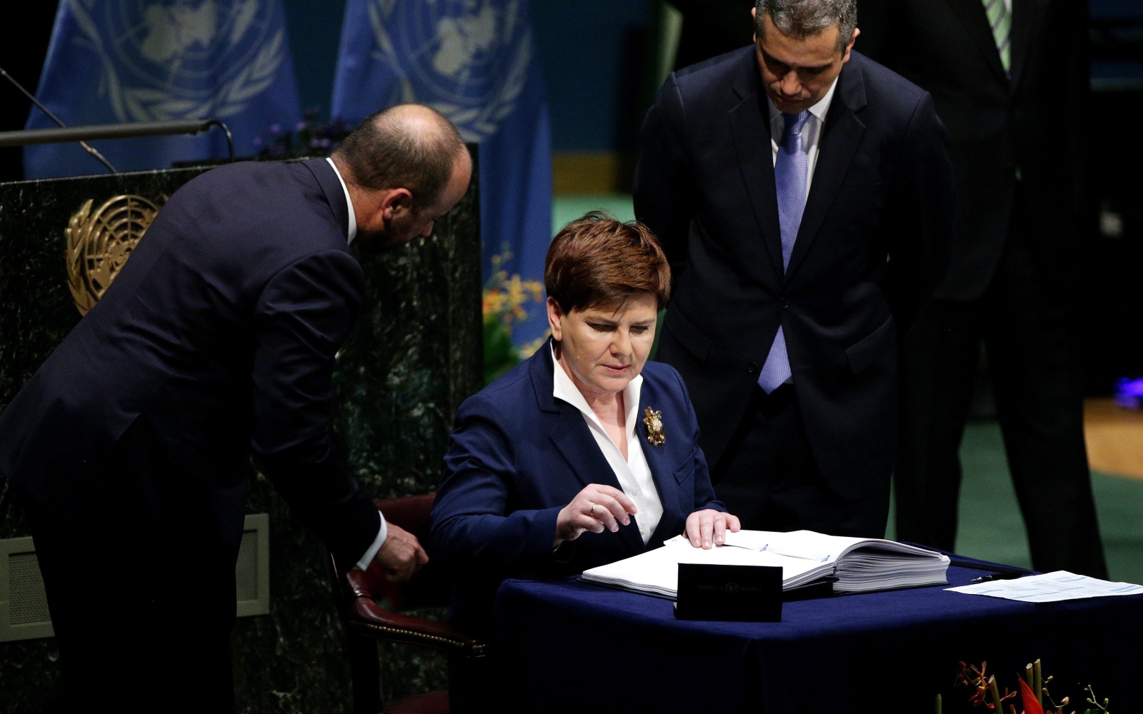 Premier Beata Szydło złożyła w piątek w głównej siedzibie ONZ w Nowym Jorku podpis w imieniu Polski pod globalnym porozumieniem klimatycznym wynegocjowanym w Paryżu pod koniec 2015 roku. W ceremonii wzięło udział około 60 szefów państw i rządów.