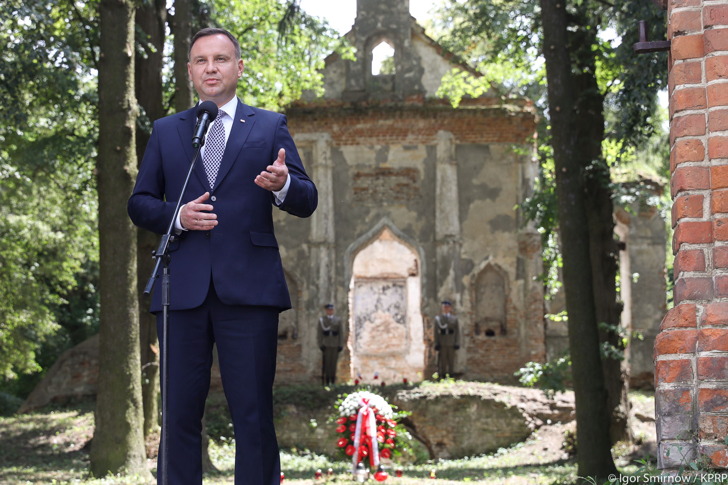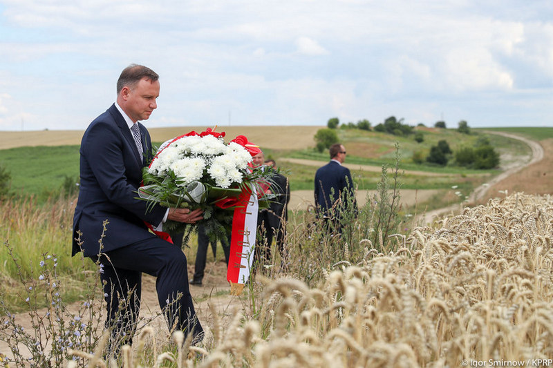 Andrzej Duda złożył wieniec w miejscu, gdzie niegdyś znajdowała się wieś, a obecnie są pola uprawne.