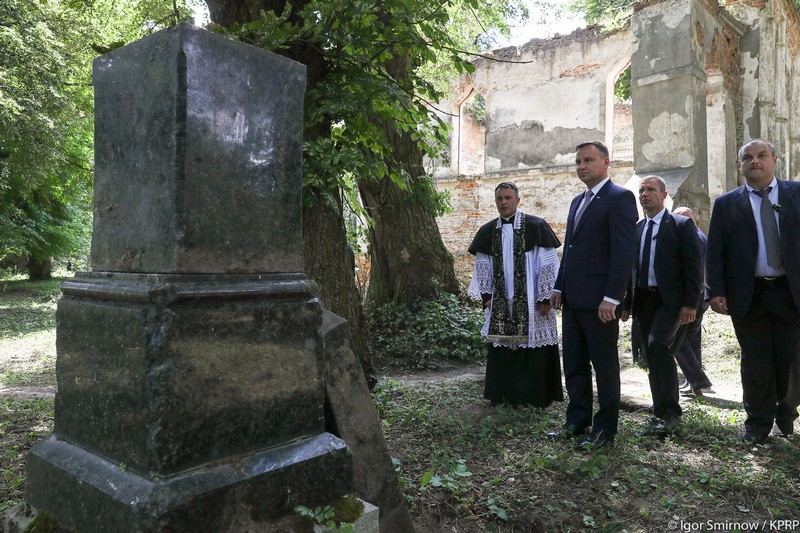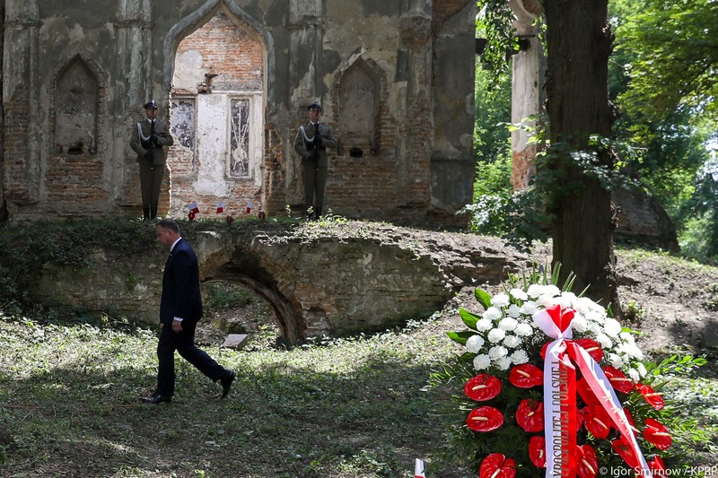 Prezydent Andrzej Duda w niedzielę oddał hołd ofiarom rzezi wołyńskiej na terenach dawnych nieistniejących już polskich wsi na Wołyniu i złożył wieniec na cmentarzu w Ołyce pod Łuckiem, w miejscu bezimiennego pochówku w zbiorowej mogile zamordowanych Polaków.