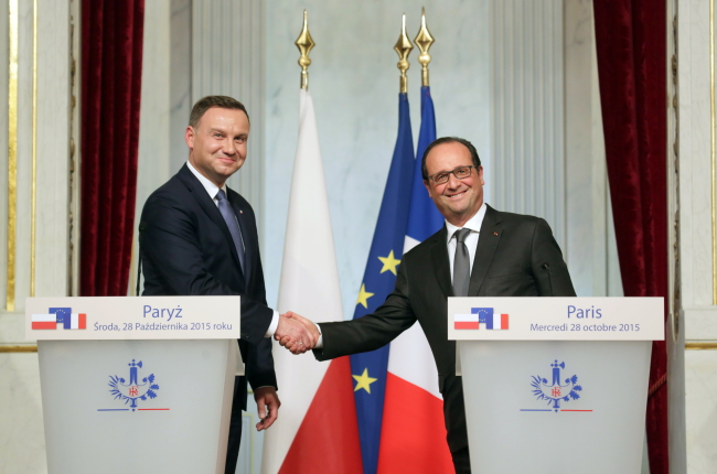 Na zdjęciu: Prezydent Andrzej Duda i prezydent Francji Francois Hollande. Fot. PAP/Leszek Szymański