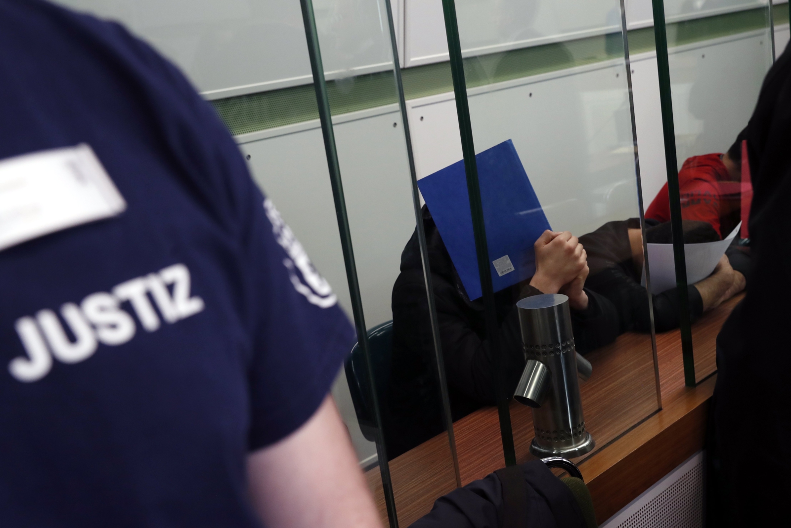 Na zdjęciu: Oskarżeni podczas procesu zasłaniali swoje twarze.