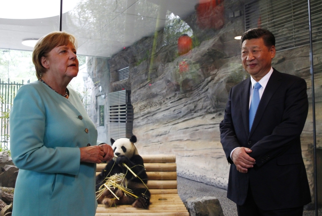 Na zdjęciu: Xi i Merkel wzięli udział w berlińskim zoo w ceremonii przekazania stronie niemieckiej pary niedźwiadków panda.