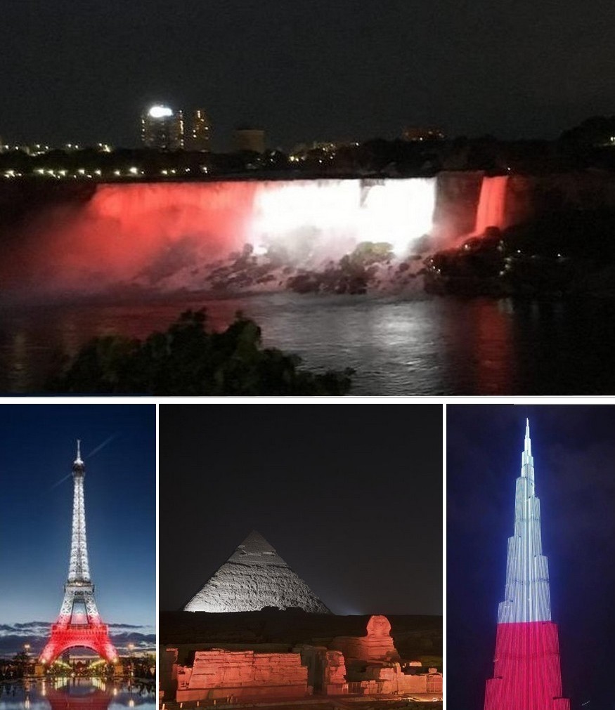 Some of the world's most iconic sites were lit up in red and white today to honour Poland's independence centenary, including the Eiffel Tower, Egypt's pyramids, Burj Khalifa in Dubai, and the Niagara Falls #PL100 #SwietoNiepodleglosci #IndependenceDay pic.twitter.com/VakPSwhZBg