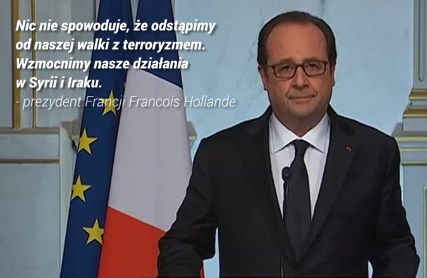 - Wzmocnimy nasze działania w Syrii i Iraku - zadeklarował prezydent Francji Francois Hollande. W kraju ogłoszono trzydniową żałobę narodową.