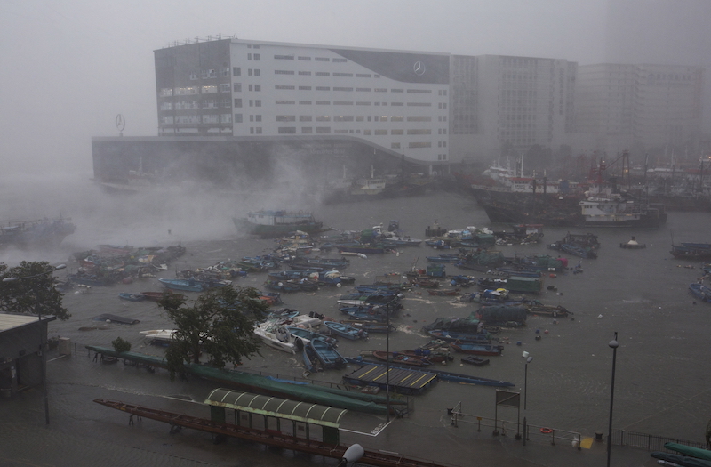 Władze Hongkongu zarządziły ewakuację mieszkańców domów zagrożonych powodzią, które są zlokalizowane w niżej położonej części aglomeracji. Odwołano większość lotów.
