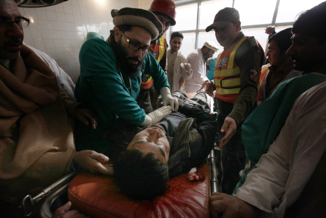 Pakistańskie stacje telewizyjne relacjonowały na żywo wydarzenia z uniwersytetu Bacza Chan, w mieście Czarsadda, oddalonym ok. 50 km od Peszawaru. Na miejsce skierowano znaczne siły policyjne i wojskowe. Są także karetki pogotowia, rannych do szpitali transportowały śmigłowce.