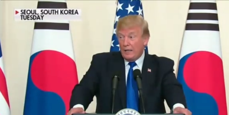 Wspomniał również, że „Korea Południowa będzie zamawiała warte miliardy dolarów uzbrojenie” z USA. Ocenił to jako sensowne z punktu widzenia Seulu i nie omieszkał dodać, że przyczyni się to także do utworzenia nowych miejsc pracy w Stanach Zjednoczonych.