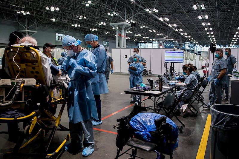 Na zdjęciu: szpital polowy utworzony w centrum konferencyjnym Javits w Nowym Jorku.