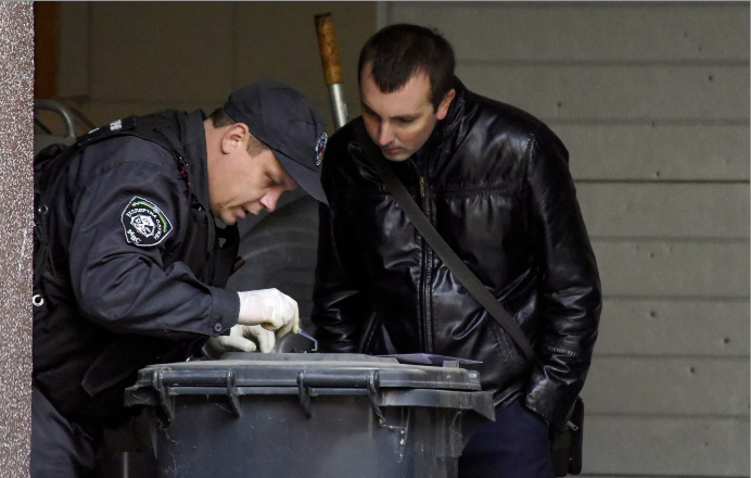 Na zdjęciu: Ukraińskie służby badają miejsce zdarzenia.