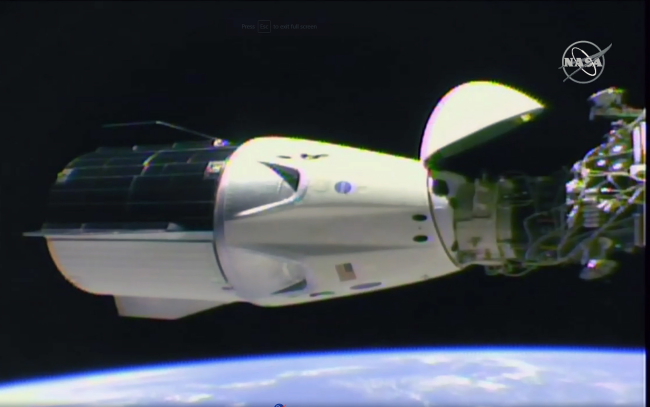 Cumowanie, które odbyło się bez udziału przebywających na ISS astronautów, nastąpiło chwilę wcześniej niż było to zapowiadane. Lot wystrzelonej w sobotę rano z centrum kosmicznego im. Kennedy'ego kapsuły na ISS trwał ok. 27 godzin.