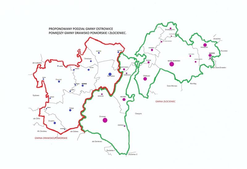 Na zdjęciu: Proponowany podział gminy Ostrowice pomiędzy Drawsko Pomorskie i Złocieniec