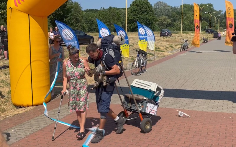 Przechodząc przez miejscowość Szadek podjął decyzję, że dalszą drogę zadedykuje Justynie Glapińskiej, która dziś witała go na mecie w Świnoujściu. Kobieta urodziła się bez stawu biodrowego. Dodatkowo nie może zgiąć nogi w kolanie. Porusza się o kulach, a jej życie to pasmo bólu, pobytów w szpitalu i 26 operacji, które przeszła. Przed nią kolejna, miejmy nadzieję ostatnia. Tym razem w Stanach Zjednoczonych, na którą właśnie Pan Jacek zbierał fundusze w drodze do Świnoujścia. Z nadzieją czeka na pozytywne zakończenie zbiórki pieniędzy na jej operację.