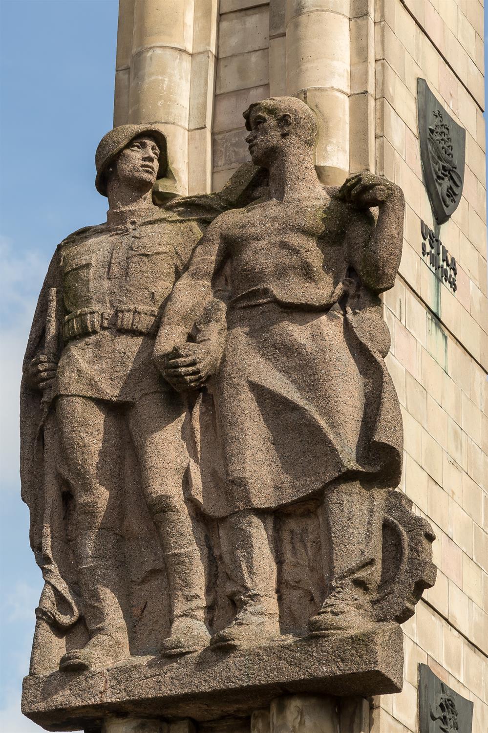 Nie wiem , czy wszystkim jest wiadome. To nie jest jeden pomnik. To są dwa pomniki w jednym. Jego pierwsza wersja była Z CZERWONEGO GRANITU, i była cieńsza. Na tą cienką ponownie nałożono , z piaskowca nowe płyty. I tak mamy wersje ostateczną.